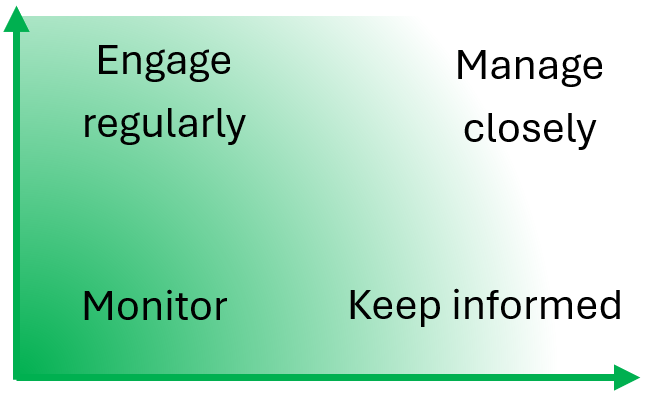 A stakeholder matrix can help in categorizing stakeholders and ensures efforts are focused throughout the lifetime of the project.